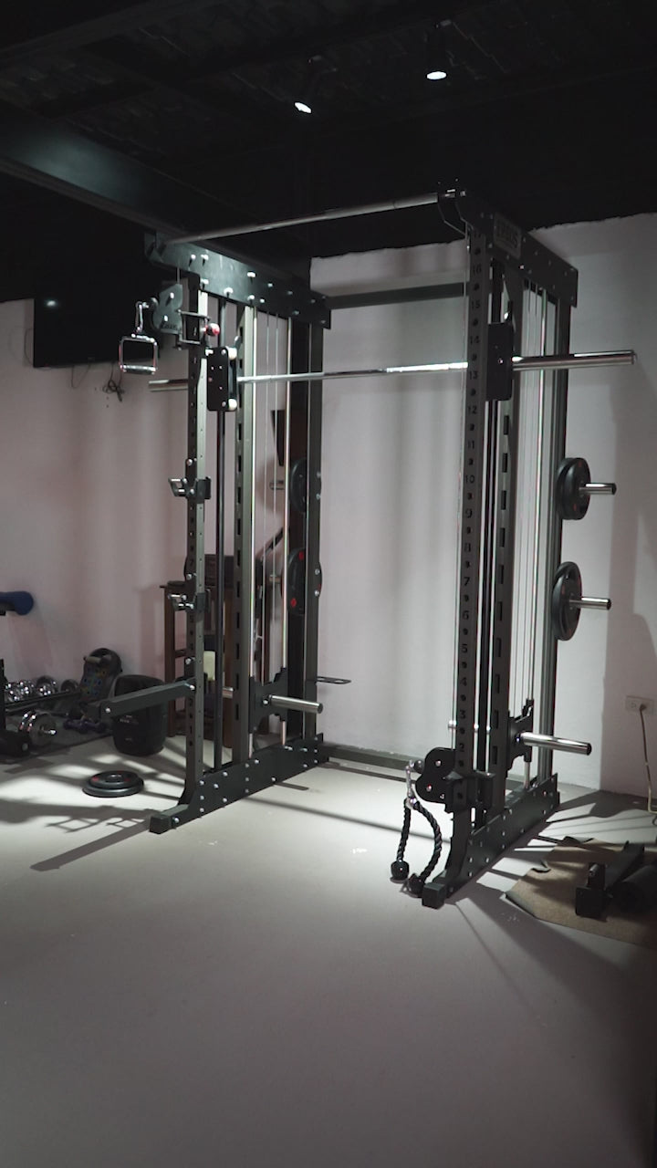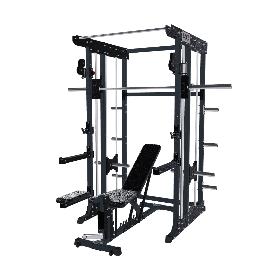 • Además incluye barra dorsal y 2 manerales individuales para cruce de poleas.